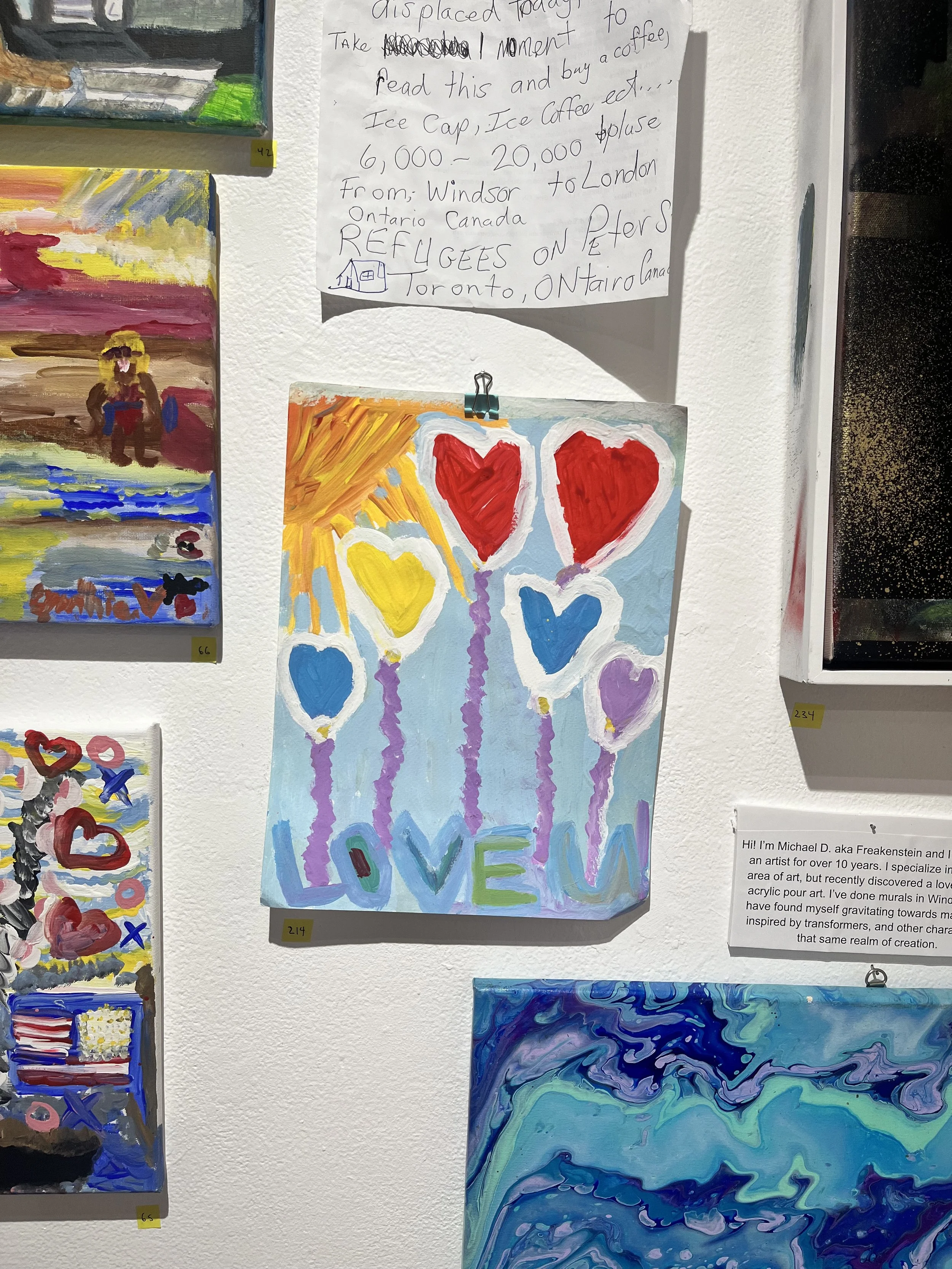 Gallery of 250+ works completed by our participants at women’s welcome centre, Windsor youth centre, and homelessness housing help hub. an array of talent completed during workshops and/or completed elsewhere and submitted to the show.thank you.